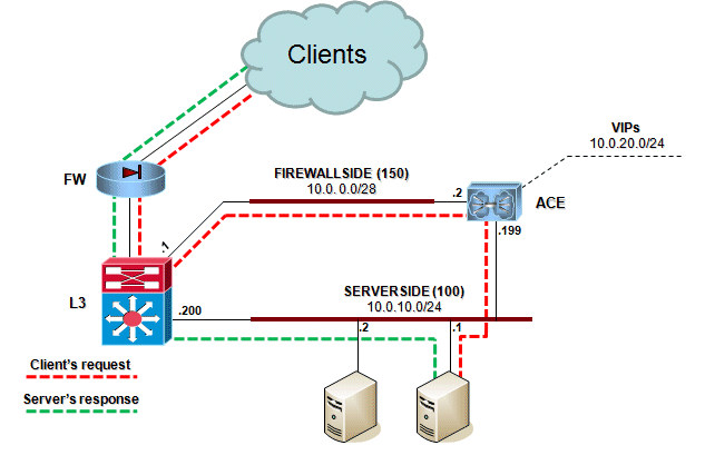 If i try to establish a telnet session(telnet 10.96.202.10 80) i see the SYN packet passing through the ACE and going to the real server, but, the server do not response the SYN packet.