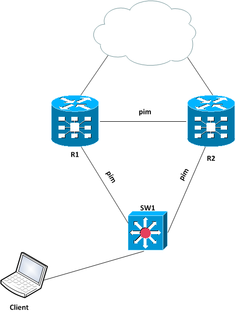 Hello. I have strange problem with multicast flows. Multicast client connected to network as on scheme: