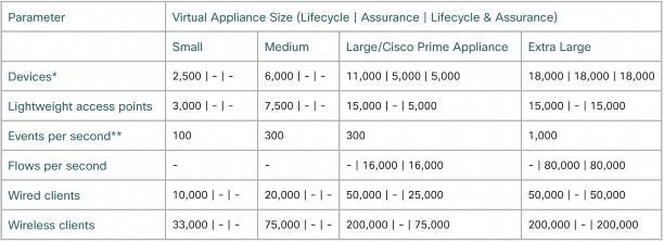 I have read the system requirements for CPI 1.2, and I talks about a small, medium, large and extra-large OVA, however it doesnt offer any details about how many devices can I manage with each one.